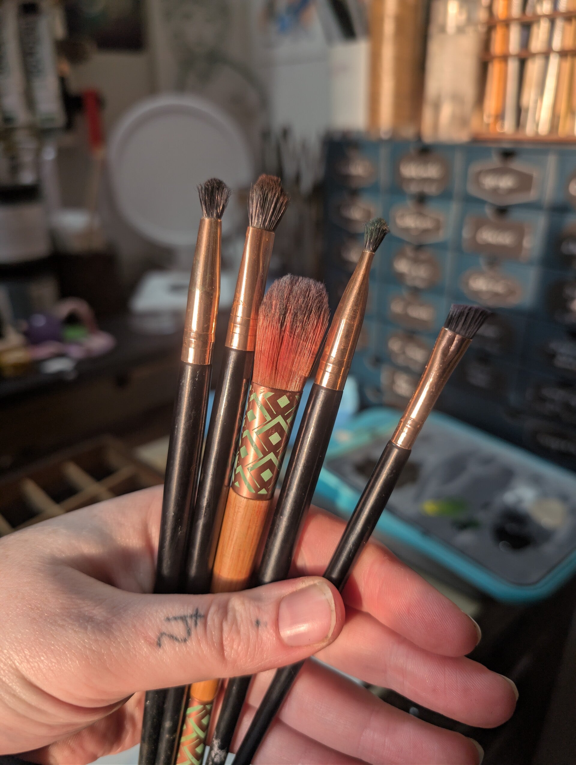 These are the absolute cheapest makeup brushes I could find at my local dollar store. I use these to apply my pastels to clay. Essential in my studio.