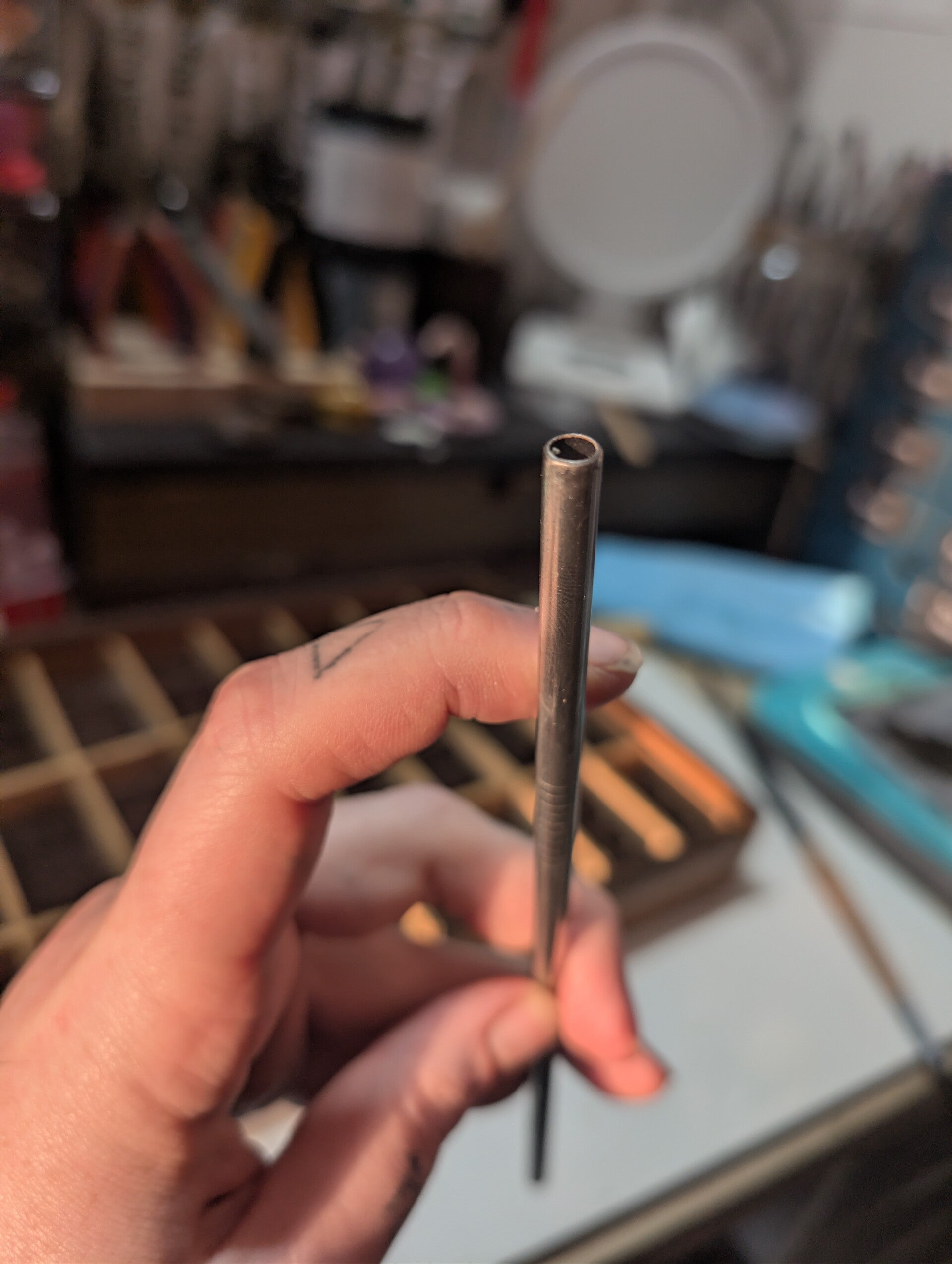 For me, this one isn't as essential as the rest, but it's a very useful tool nonetheless. You can use it to roll out your clay in a pinch, if you really don't have an acrylic clay roller or a pasta machine. You can create a circle texture, or use it to smoothen surfaces. I mostly use it to form beads around, and as it is stainless steel I can just pop it in the oven with the clay around it and it won't melt and ruin the oven or the pieces.