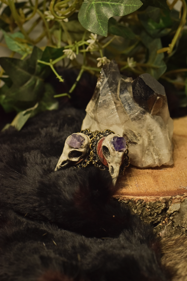 Expand on your gothic jewellery collection with this carefully crafted raven skull ring, available with or without gemstone. This gorgeous piece comes with adjustable backing so it fits most fingers.
