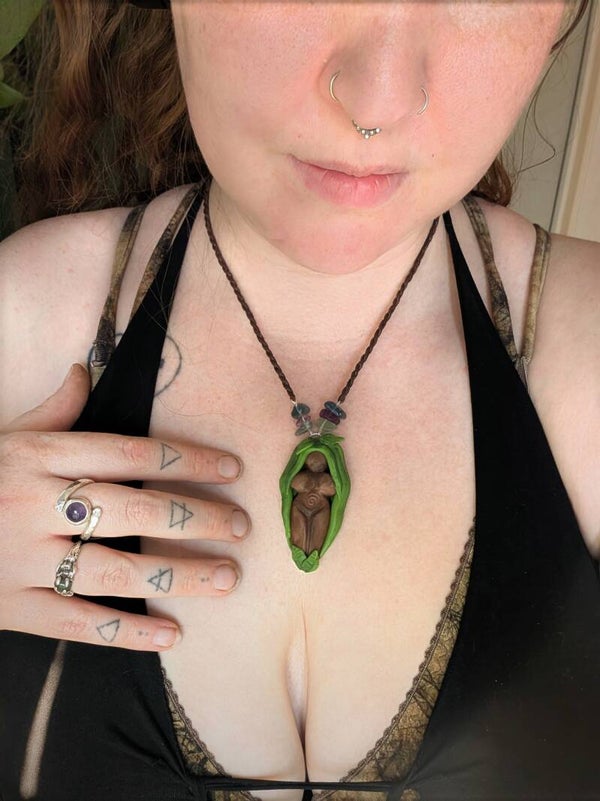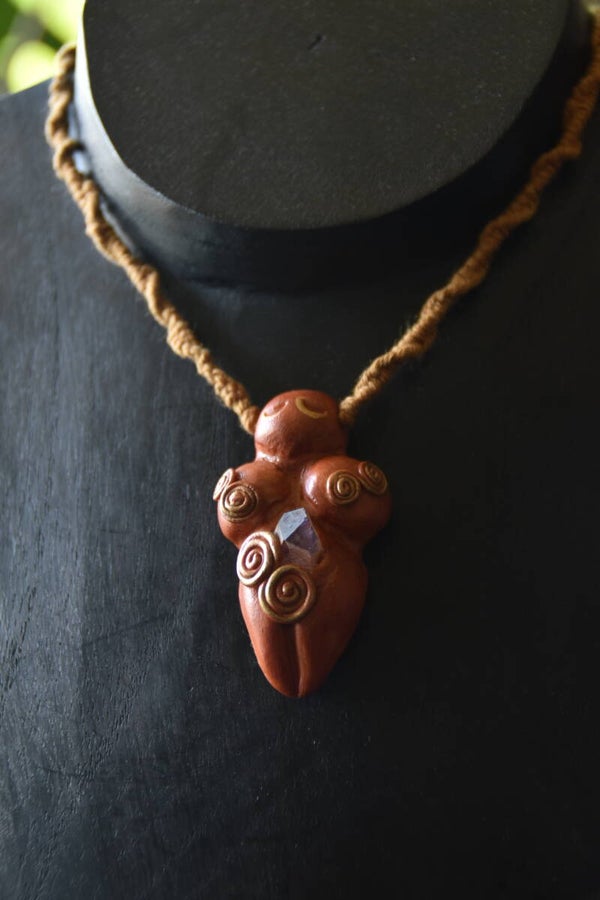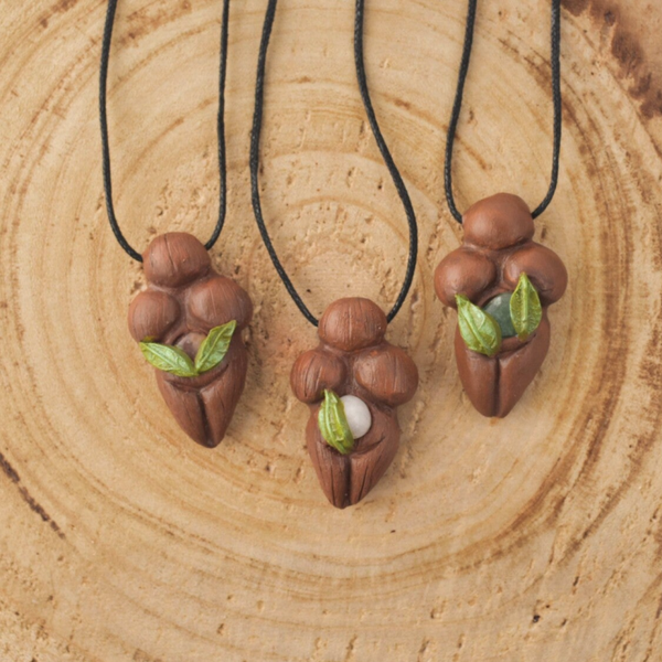 These cute little goddess pendants are the perfect daily jewellery for any nature-loving spirit and green witch. Each one is adorned with a little crystal in the belly to represent the power of femininity and Mother Earth.