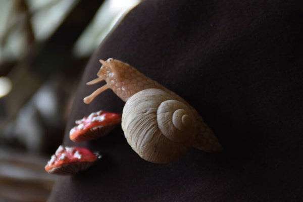 This charming snail brooch is the perfect companion for your hat, bag, or jacket as you embark on outdoor adventures, festivals, or simply brighten your everyday look. Carefully hand-sculpted with love and attention to detail, each snail features a real, ethically-sourced snail shell for a unique and natural touch.