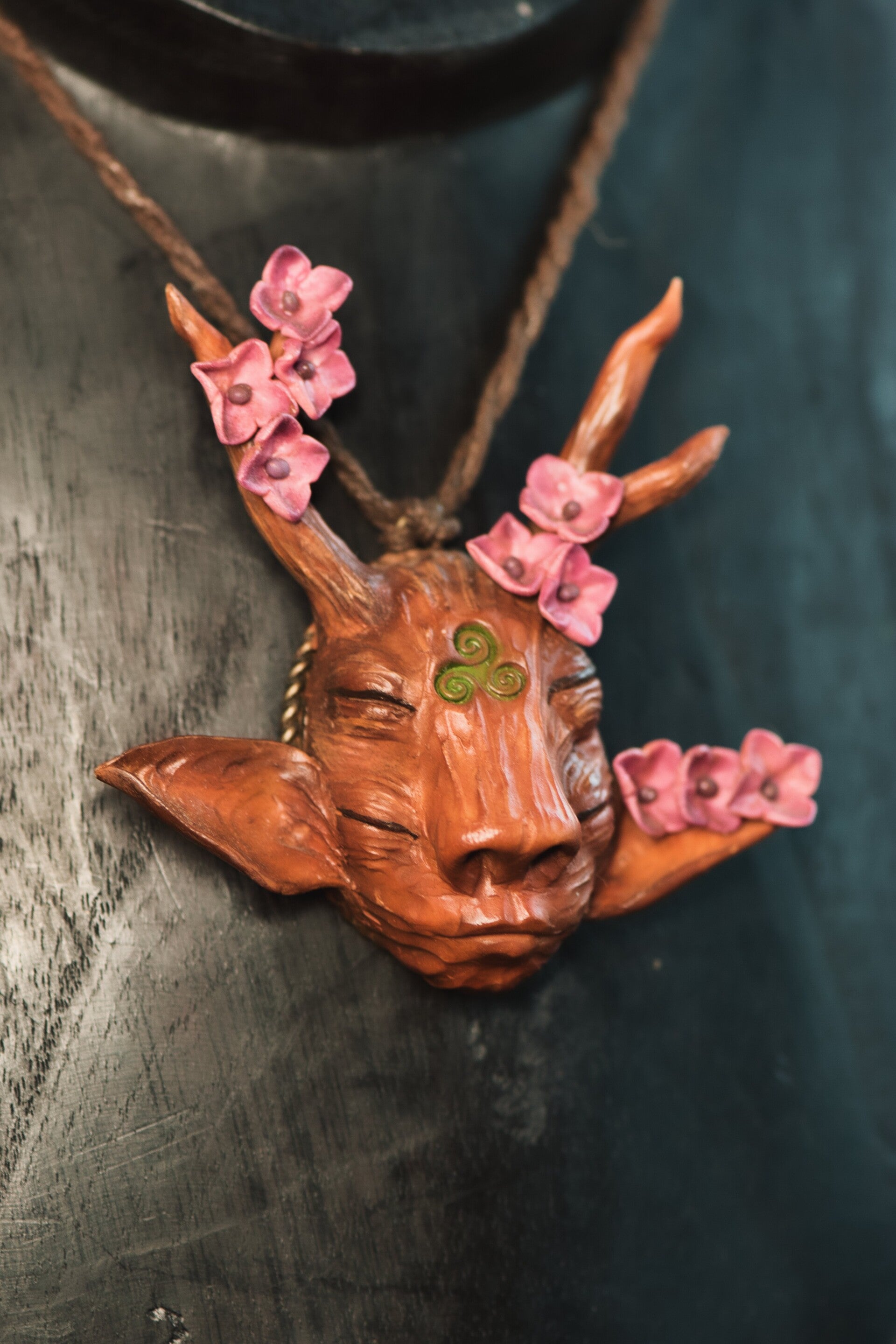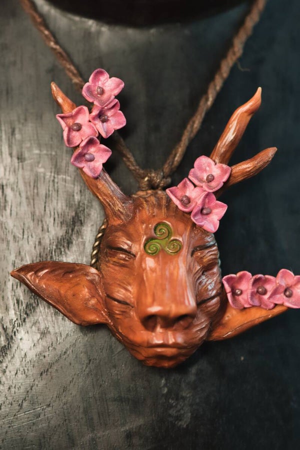 This talisman featuring a dryad faerie portrait and stunning hand sculpted flower details is a perfect item to represent Ostara, Spring, Renewal and Fertility.