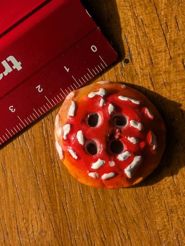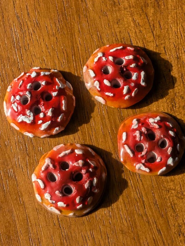These handmade Amanita buttons are available in all kinds of beautiful colours. They are made from apoxy sculpt and sealed with a UV resin to make them as durable as possible and weather resistant.