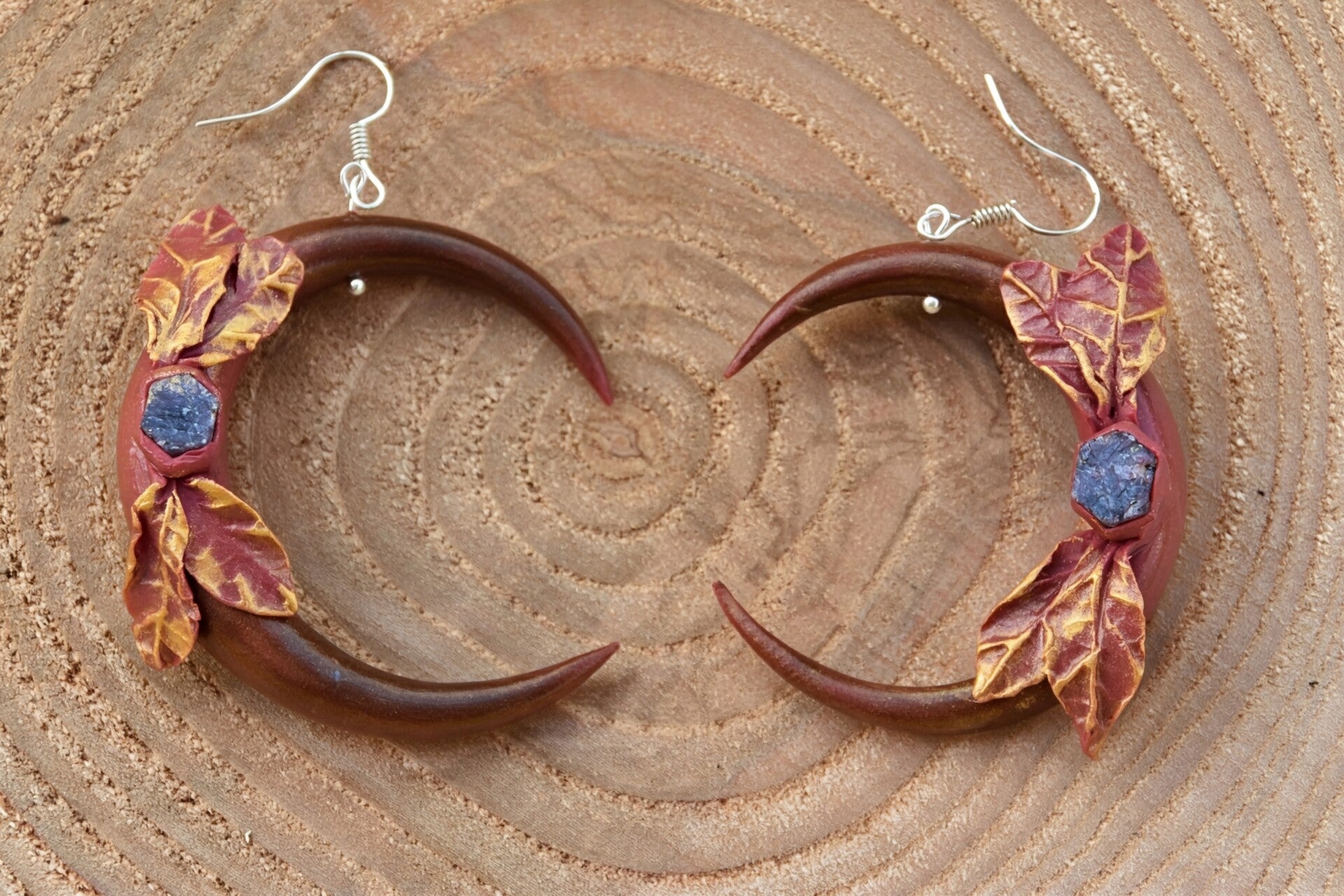 Custom pair of Crystal Moon earrings. Photos are just examples. Please specify colouring and gem.