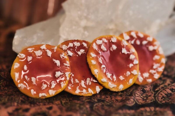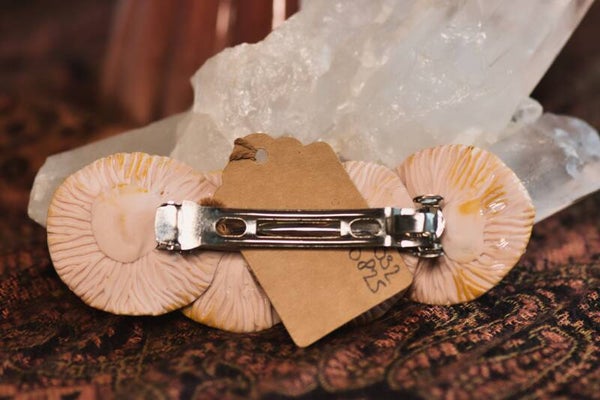 Larger amanita hairclip, perfect for a cottagecore or whimsical look.
