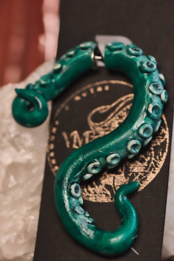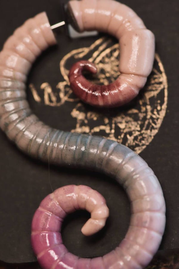 Faux Guage earring available in Tentacle, Worm or Branch variety. Unique jewelry for a goblincore, whimsical or nature inspired look.