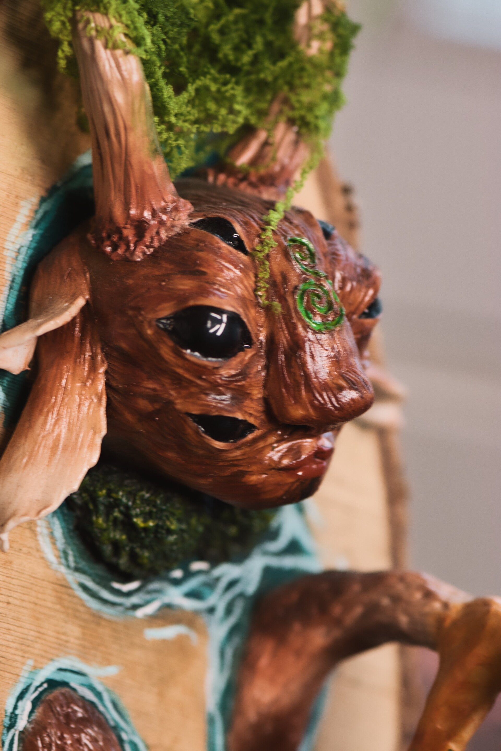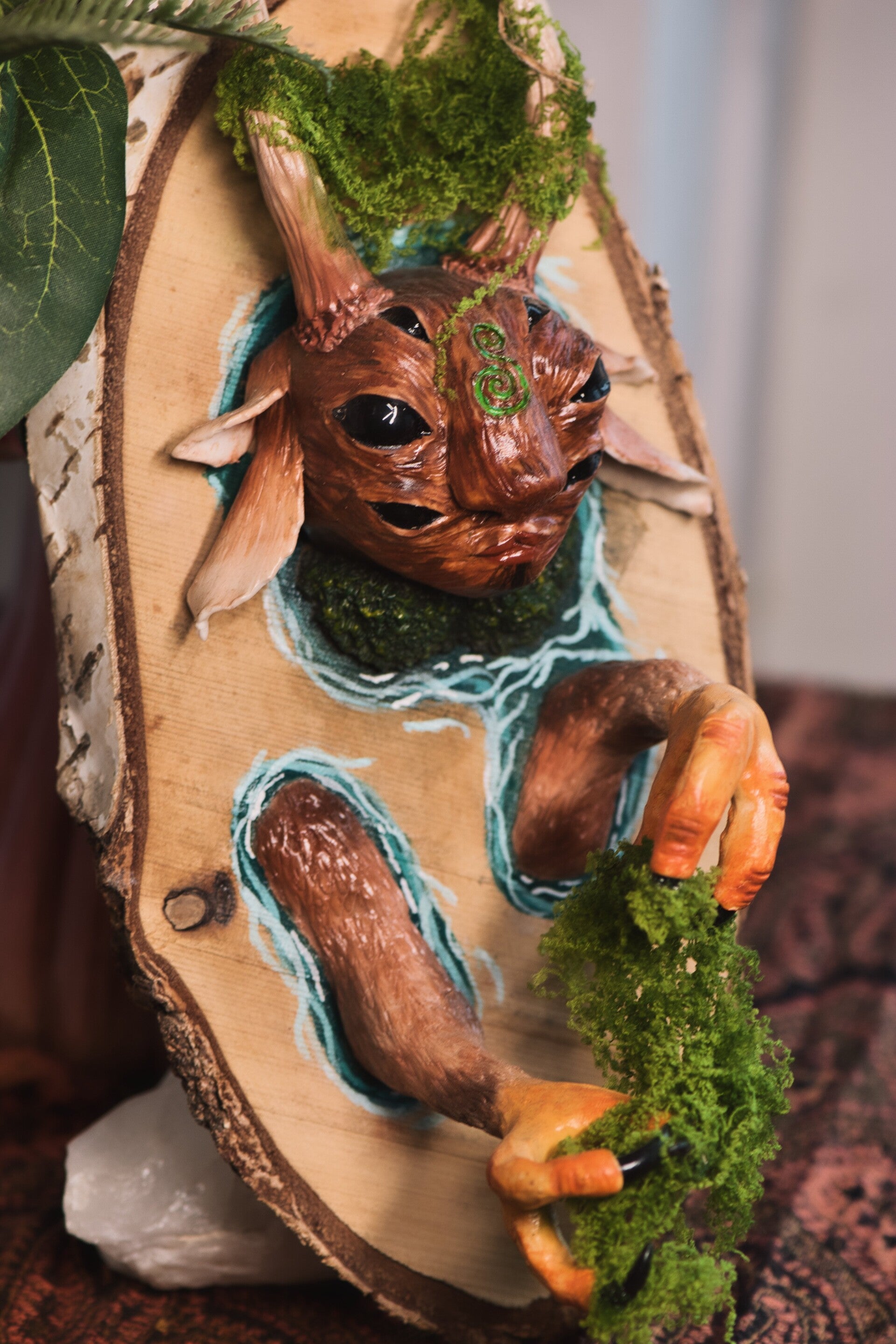 One of a kind unique Faerie sculpture. The Mossweaver does as its name implies, it weaves moss into fabric to make magical faerie garments.