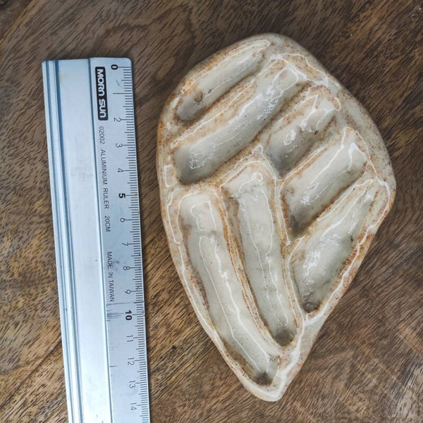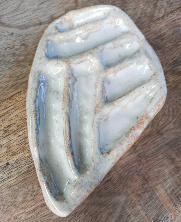 This ceramic palette, sculpted and glazed by hand, is a must have for any watercolour or gouache artist. Its shape represents a moth wing and fits perfect within a studio or atelier of an artist in love with nature and its beauty.